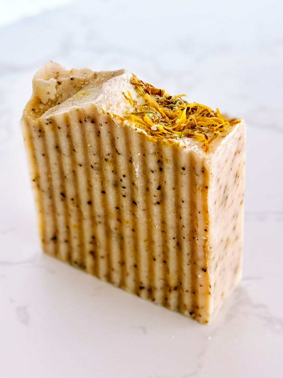 Enjoy the subtle aroma of the organic oils and raw local honey leaving you feeling warm and comforted. The gluten free ground organic oats give the bar a mild texture that imparts the feeling of deep cleansing and renewal. You will leave the shower feeling relaxed and restored with the energy you need to face the day. Great for sensitive skin. Unscented.
